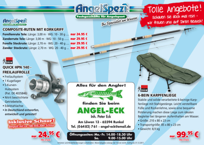 Regelmäßig werden wir hier eine kleine Auswahl an Angeboten einfügen, die wir in unserer Vereinszeitschrift (FSV Oberlahn), dem "Lahnfischer"